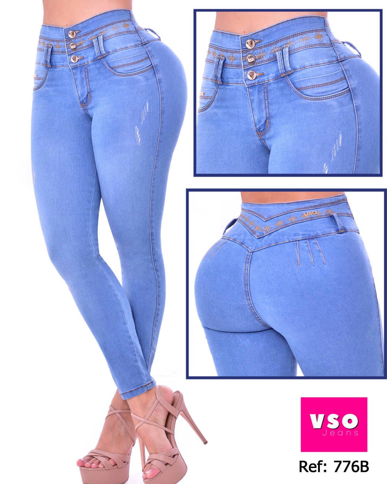 Jeans con tecnología levanta cola y control de abdomen, se ajusta y realza la silueta; originales 100% Colombianos.